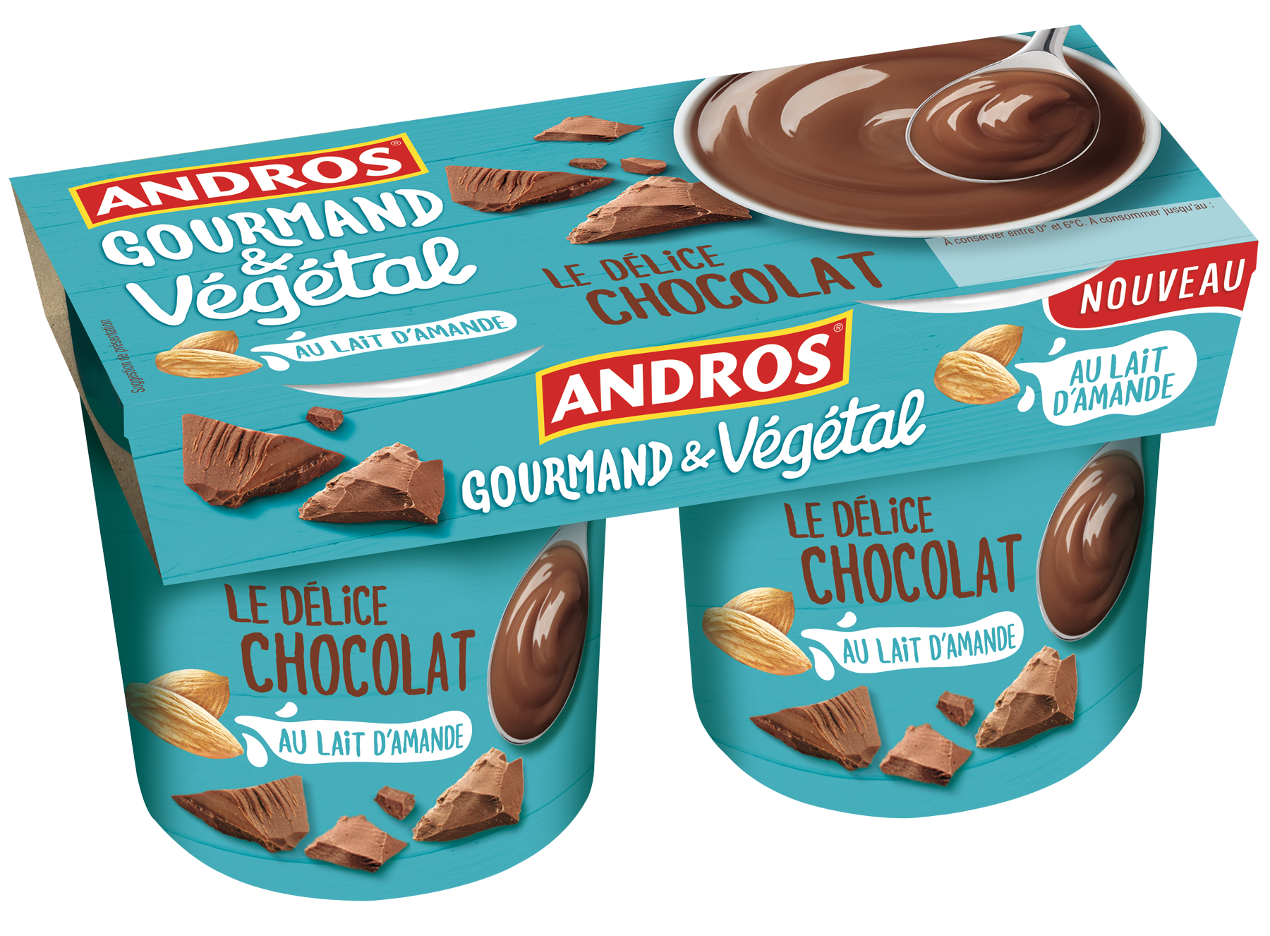 Neben zwei veganen Joghurts umfasst die neue Produktlinie Gourmand & Végétal der französischen Marke Andros auch zwei Desserts mit feinem Schokolade- bzw. Haselnuss-Geschmack. Basierend auf Mandelmilch enthalten die Desserts ausschließlich pflanzliche Zutaten und sind ohne Laktose und Gluten ideal für Menschen, die an Intoleranzen leiden. Die beiden Sorten Chocolat und Noisette sind ab sofort österreichweit in den Kühlregalen des Handels erhältlich.