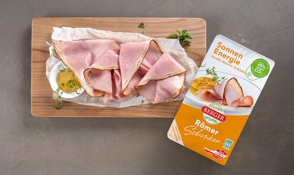 Der moderne Schinkenkonsument möchte weder auf Qualität noch auf Nachhaltigkeit verzichten. Zeitgemäßer Fleischgenuss setzt sich für Berger demnach aus einem ausgezeichneten Produkt und nachhaltiger, regionaler Produktion mit Rücksicht auf die Umwelt zusammen: Dank des Verzichts auf Übersee-Soja sind die Schinken- und Wurstprodukte aus dem Klimaschutzprogramm Regional-Optimal deutlich umweltfreundlicher. Fast die Hälfte an CO2 wird so eingespart.