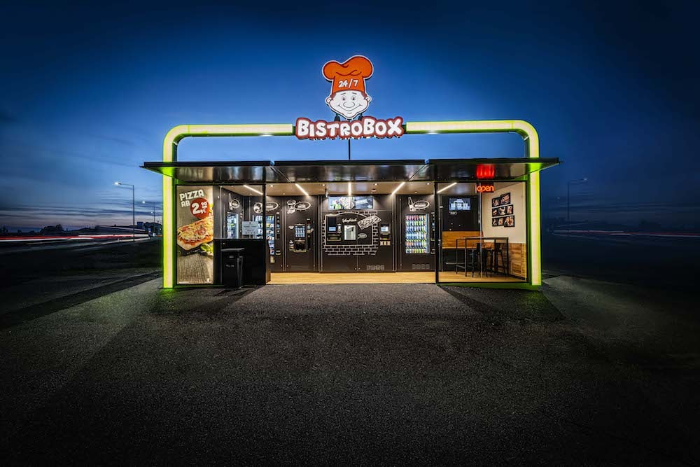 Die 24h Selfservice Pizzeria kommt ohne Personal aus, Kunden können sich über Touch-Displays in nur zwei Minuten selbst eine hochwertige Steinofenpizza backen. Dazu gibt es auch Snacks, Getränke oder Coffee-to-go. Derzeit betreiben mehr als 20 Franchise-Partner einen oder mehrere BistroBox-Standorte in Österreich.