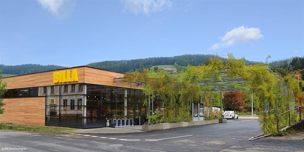 Nachhaltig und energieeffizient, das sind die beiden großen Schlagworte des Billa in Obdach, der nach vier Monaten Bauzeit eröffnet wurde. So spielte u. a. die extensive Begrünung von Dachflächen und Fassaden sowie der Außenbereiche und Parkplätze bei der Errichtung eine wichtige Rolle und trägt nun zu einem kühlenden Mikroklima in der unmittelbaren Umgebung bei.