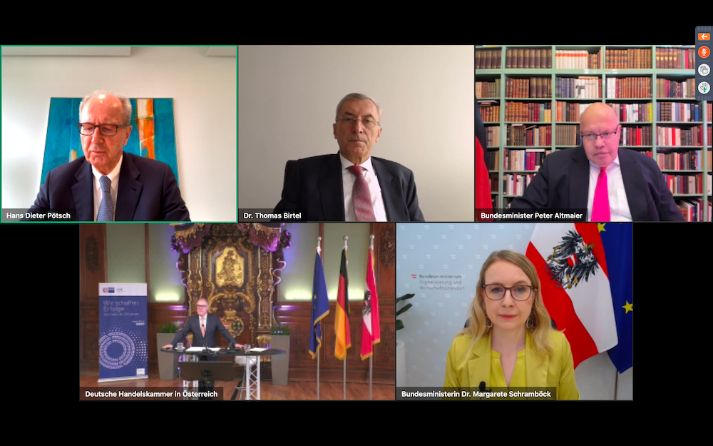 „Die Deutsche Handelskammer in Österreich ist mit ihren rund 1400 Mitgliedern das größte deutsch-österreichische Wirtschaftsnetzwerk in Österreich“, hob Hans Dieter Pötsch, DHK Präsident, Aufsichtsratsvorsitzender der Volkswagen AG und Vorstandsvorsitzender der Porsche SE, die Bedeutung der Organisation hervor. Auch während der Coronakrise hat sich dieses Netzwerk bewährt: Die Kunden wurden online betreut, die Mitarbeiter der DHK erteilten Tausende Auskünfte über Einreisebeschränkungen und Corona-Fördermaßnahmen für Unternehmen und DHK Veranstaltungen wurden online abgehalten. Nun, nachdem die schlimmste Phase der Pandemie überstanden scheint, gelte es, die bestehenden Wirtschaftsbeziehungen zu intensivieren, so Pötsch. Er fordert einen engen technologischen Schulterschluss zwischen den Ländern, zum Beispiel in der Mobilitätswirtschaft. „Ich würde es zum Beispiel sehr begrüßen, wenn wir verstärkt an der Vernetzung der E-Mobility-Infrastruktur zwischen Österreich und Deutschland arbeiten würden. Damit sollte auch eine intensivere Zusammenarbeit der Energieversorgungsunternehmen einhergehen.“