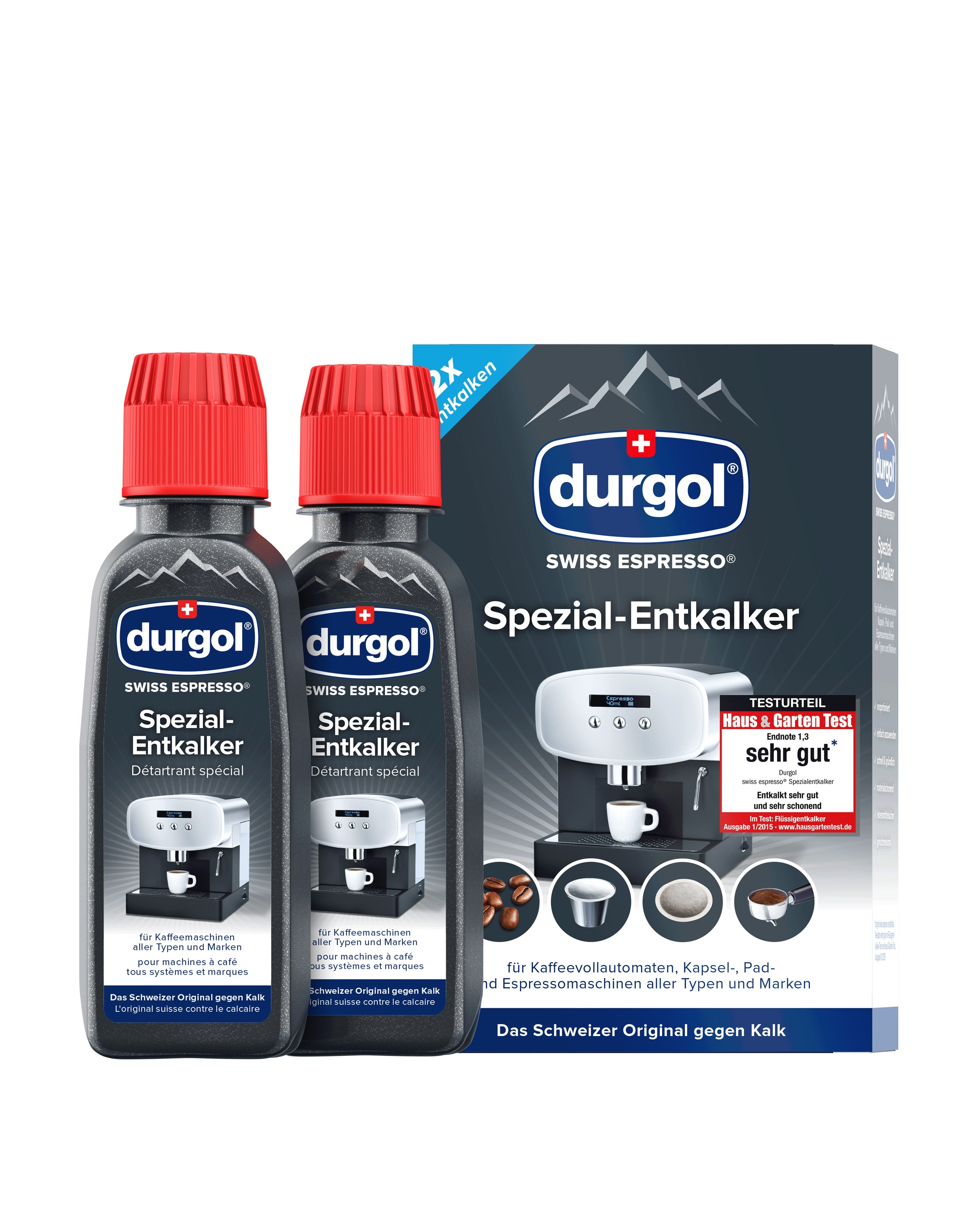 Der durgol swiss espresso Spezial-Entkalker reinigt und schützt Kaffeemaschinen aller Typen und Marken und ist für Vollautomaten und Siebträgermaschinen gleichermaßen geeignet wie für Kapsel- und Kaffeepadsysteme. Die praktisch portionierte 125 ml-Flasche ist genau auf eine Entkalkung abgestimmt und garantiert eine einfache und schnelle Anwendung im Durchlaufverfahren, ohne zusätzliche Einwirkzeit. Durch regelmäßiges Entkalken werden eine längere Lebensdauer der Maschine und eine optimale Kaffeequalität sichergestellt.