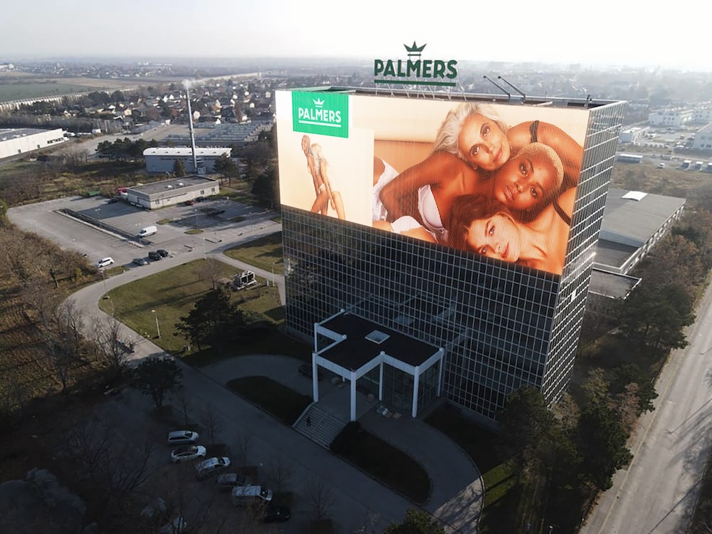 Das Palmers-Hochhaus in der Nähe von Wiener Neudorf verwandelt sich Anfang kommenden Jahres zum größten LED-Werbeträger Europas und übertrifft damit sogar die Ausmaße der bekannten 784 m2 großen Werbefläche am Piccadilly Circus.