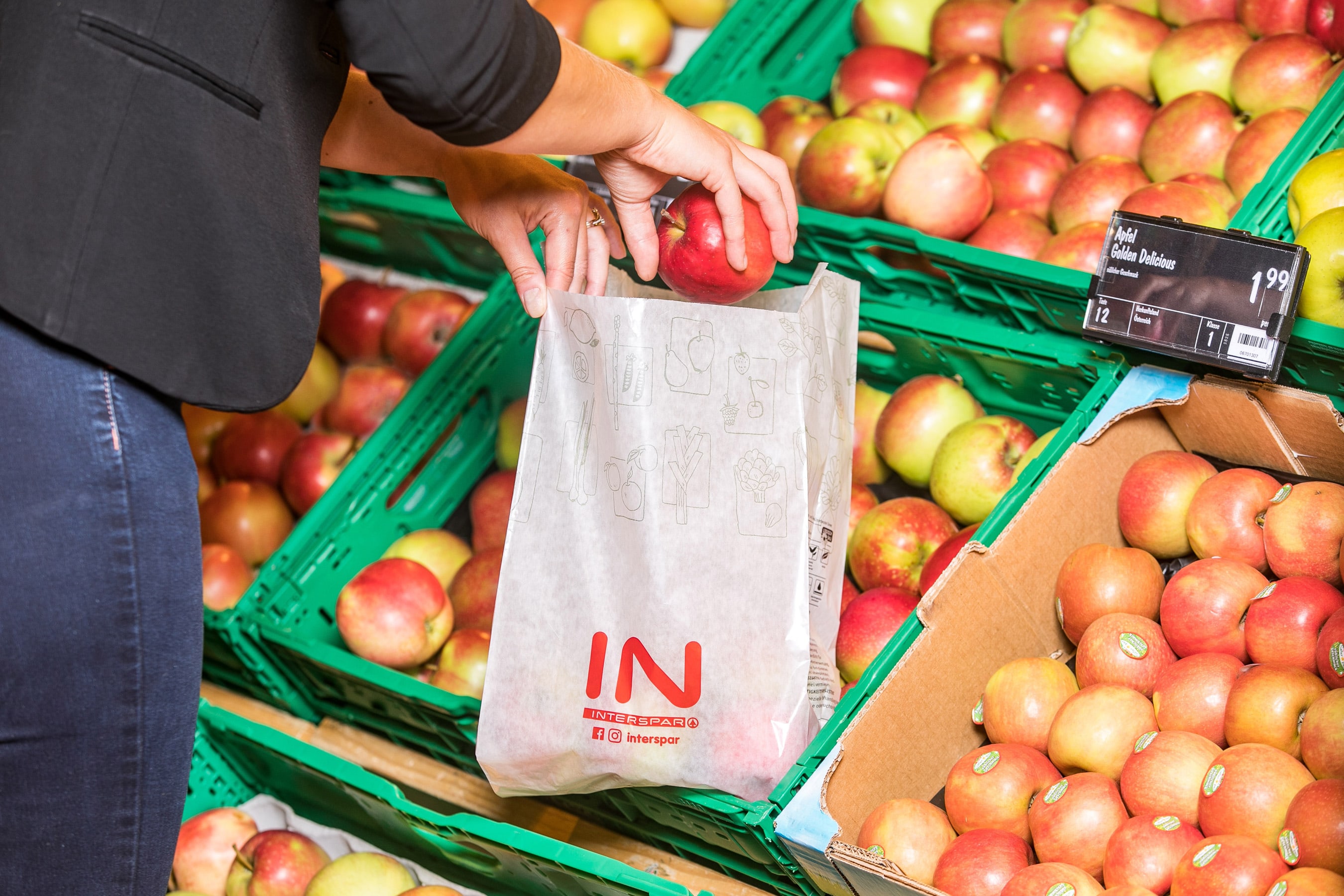 Ab sofort testet Interspar in elf Hypermärkten in Salzburg und der Steiermark Papiersackerl als Alternative zu Plastik-Sackerl für den Obst- und Gemüseeinkauf. Die Papiersackerl gibt es gratis.