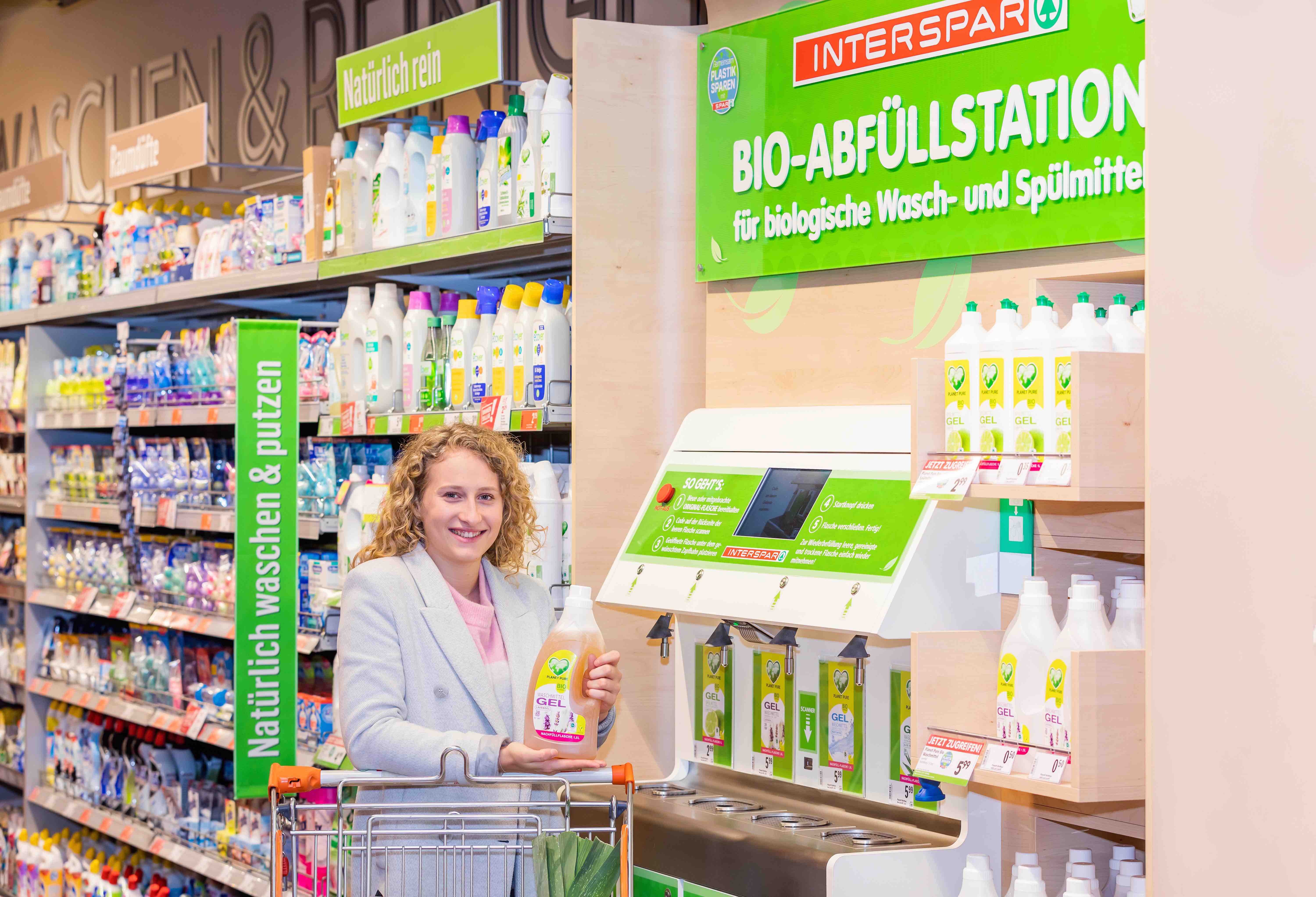 Aktuell testet Interspar in zwei Hypermärkten in Wien und Salzburg eine Abfüllstation für Wasch- und Spülmittel aus biozertifizierten Rohstoffen. "Das plastiksparende Konzept mit wiederbefüllbaren Gebinden schont die Umwelt in vielerlei Hinsicht. Mit dem Vorarlberger Unternehmen Planet Pure haben wir einen innovativen Partner an unserer Seite, der 2011 das weltweit erste biozertifizierte Waschmittel entwickelt hat“, so Mag. Markus Kaser, Geschäftsführer Interspar. Alle Produkte von Planet Pure werden auf pflanzlicher Basis hergestellt und sind zu 100 % biologisch abbaubar. Der Testbetrieb der Abfüllstationen läuft aktuell in den Interspar-Hypermärkten Salzburg-Europark und in der Jörgerstraße in Wien-Hernals, im Februar folgt eine dritte Abfüllstation im Interspar-Hypermarkt Villach-Atrio.