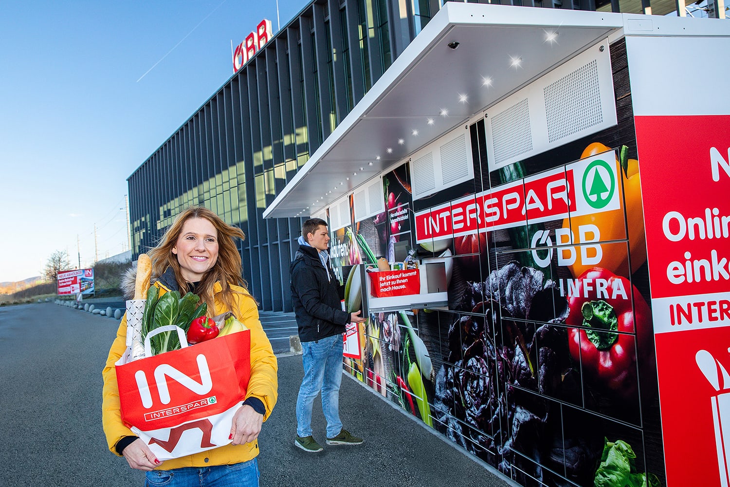 Über interspar.at/lebensmittel kann man seine Bestellung abgeben und seit nun auch am Bahnhof Tullnerfeld aus einer Abholbox nehmen. Diese Kooperation startete Interspar mit der ÖBB. Werden die Abholboxen angenommen, so wird das Projekt weiter an den niederösterreichischen Bahnhöfen Wolf in der Au und Hadersdorf ausgerollt.