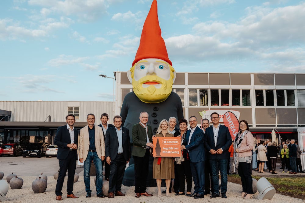 Im Rahmen der Feier hatten die Niederösterreichische Mostkönigin Sigrid I und Primus der Mostbarone Josef Zeiner den eigens hergestellten Kastner Zwergenmost im Gepäck. In Zukunft wird dieser in allen Kastner Abholmärkten exklusiv erhältlich sein.