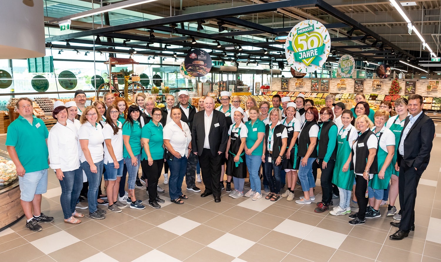 Die Bewohner in Amstetten rund um die Otto‐Schott‐Straße 2 dürfen sich freuen, denn Merkur Markt eröffnete am 18. Juli nach einer 10wöchigen Umbauphase. Auf 2200 m2 Verkaufsfläche mit einem überdachten Parkplatz gibt es einige neue Features im Lebensmittelhandel. 20.000 Produkte stellt der Markt zur Verfügung. Walter Jansky, bereits seit der Eröffnung im Jahr 2001 Marktmanager in der Otto‐Schott‐Straße 2, freut sich gemeinsam mit seinen 76 Mitarbeitern ab sofort wieder für seine Kunden da zu sein. Rund 30 Personen seit der Eröffnung des Marktes darf er zum Stammpersonal zählen.