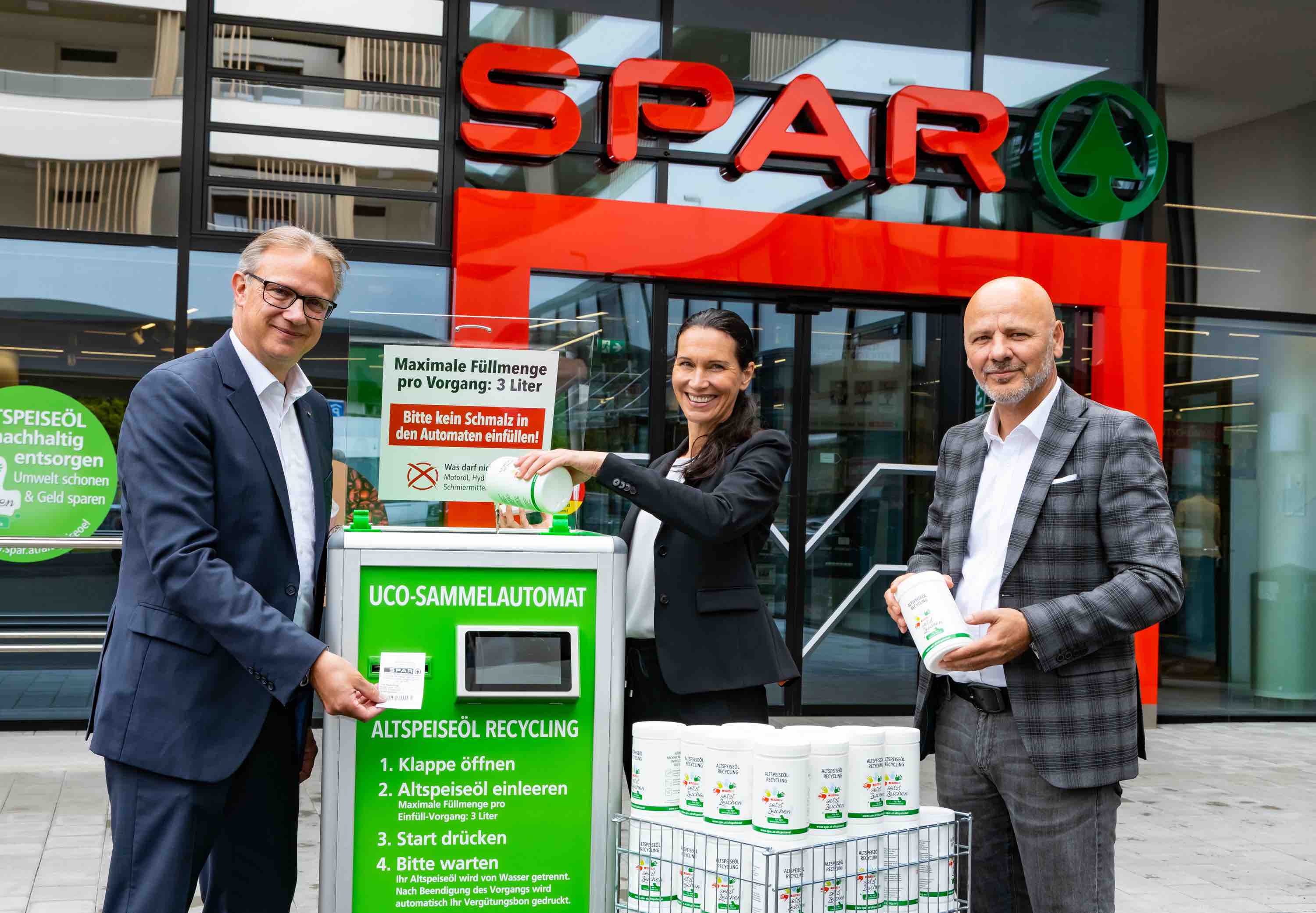 An vier Standorten der Spar will der Lebensmittelhändler das Recycling von Alt-Speiseöl forcieren und testen.