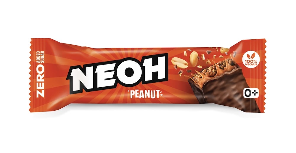 Der Neoh Peanut Riegel besticht mit dem beliebten und bekannten Geschmack von gerösteten Erdnüssen, ummantelt von cremigem Karamell und veganer Schokolade. Dabei überzeugt er auf ganzer Linie mit seinen Inhaltsstoffen und unterscheidet sich damit klar von herkömmlichen Schoko-Riegeln: null zugesetzter Zucker, rein pflanzlich, palmölfrei und mit einem hohen Anteil an Ballaststoffen. Zusätzlich sorgen Protein-Crispies für die knusprige Textur und einen extra hohen Proteingehalt.
