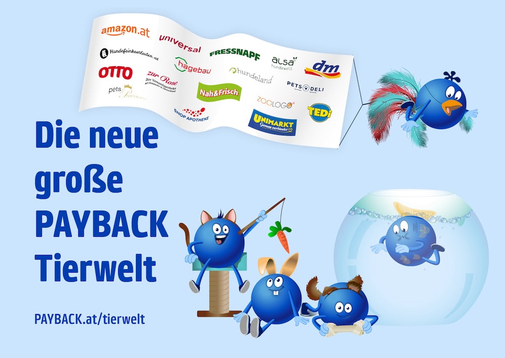 3,2 Mio. Kunden hat Payback vorzuweisen. Jetzt haben auch die tierischen Bewohner einen eigenen Marktplatz. In der „Payback Tierwelt“ finden sich viele Angebote und Möglichkeiten zu punkten und zu sparen, und das bei starken online und offline Partnern wie Amazon, dm drogerie-markt, Fressnapf, Unimarkt, Nah & Frisch, TEDi und OTTO.