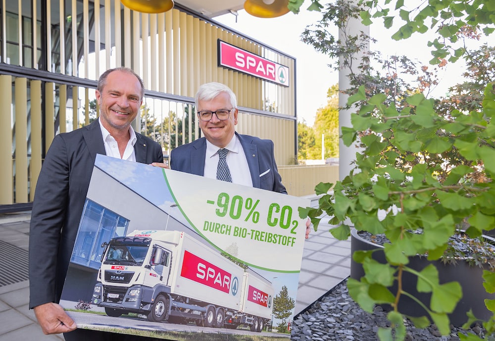 Spar betreibt in Österreich rund 300 Lkw, die von sieben Lägern aus die 1500 Spar-Märkte im ganzen Land versorgen. Mehr als die Hälfte davon sind auf den Straßen in Wien, Niederösterreich, Burgenland, Kärnten und der Steiermark unterwegs. Sie werden seit Mitte September mit erneuerbarem HVO-Treibstoff betankt. Diese Umstellung in den Spar-Lägern in Graz und Maria Saal war mit dem regionalen Treibstoff-Lieferanten F.Leitner Mineralöle möglich, die beiden Standorte in St. Pölten und Ebergassing beliefert EnergieDirect Austria. Für weitere Spar-Regionen in Österreich laufen die Verhandlungen noch.