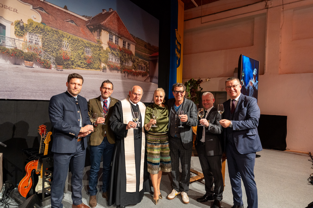 In guter Tradition begrüßten Vorstandsvorsitzender Andreas Pirschl und Betriebsleiter Ing. Michael Rethaller die zahlreichen Gäste aus Wirtschaft, Politik und Kultur persönlich. Im Mittelpunkt stand auch die neu aufgelegte Werbekampagne mit Gregor Bloéb, die im Rahmen des Festes erneut präsentiert wurde. Unter dem Motto „Guter Wein braucht kein Theater“verkörpert Bloéb den Qualitätsanspruch von Lenz Moser auf authentische Weise. Die Weinsegnung vollzog Abt em. Georg Wilfinger vom Benediktinerstift Melk. Als neuer Weinpate taufte Gregor Bloéb den Grünen Veltliner Selection 2025 feierlich auf den Namen „Nina“. Durch den Abend führte Moderatorin Verena Scheitz.