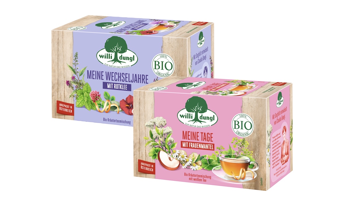 Die funktionalen Kräutertees von willi dungl sind seit mehr als 20 Jahren bewährt und beliebt. Nun erweitert die Marke das Sortiment um zwei Kompositionen, die in Anlehnung an die Bedürfnisse von Frauen in unterschiedlichen Lebensphasen entwickelt wurden. Die beiden Funktions-Tees Meine Wechseljahre und Meine Tage setzen auf die natürliche Kraft der Kräuter und wurden von Teekanne gemeinsam mit Claudia Dungl kreiert. Die Tochter von „Gesundheitspapst“ Willi Dungl verbindet dabei ihr fundiertes Kräuterheilkunde-Wissen mit ihrer Expertise als Pharmazeutin.