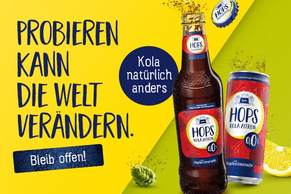 Kola-Getränke gibt es viele. Doch der Geschmack variiert dabei meistens nur wenig. Zipfer HOPS geht einen neuen Weg und bietet mit dem neuen HOPS Kola Zitron eine einzigartige Erfrischung, die Kola-Liebhaber in eine ganz neue Welt eintauchen lässt – und das vom ersten Schluck an. Das Erfolgsrezept ist einfach: Dunkles alkoholfreies Bier gemischt mit Hopfen-Kola-Zitronenlimonade sorgt für ein außergewöhnliches Aroma, das dein Leben trotz der dunklen Farbe vom ersten Schluck an bunter macht. Anders als andere Kola-Getränke verzichtet HOPS dabei nicht nur komplett auf künstliche Zusatzstoffe, sondern enthält auch ein Drittel weniger Zucker als andere Limonaden. So bleibt genügend Platz für prickelnden Geschmack und einzigartige Erlebnisse.